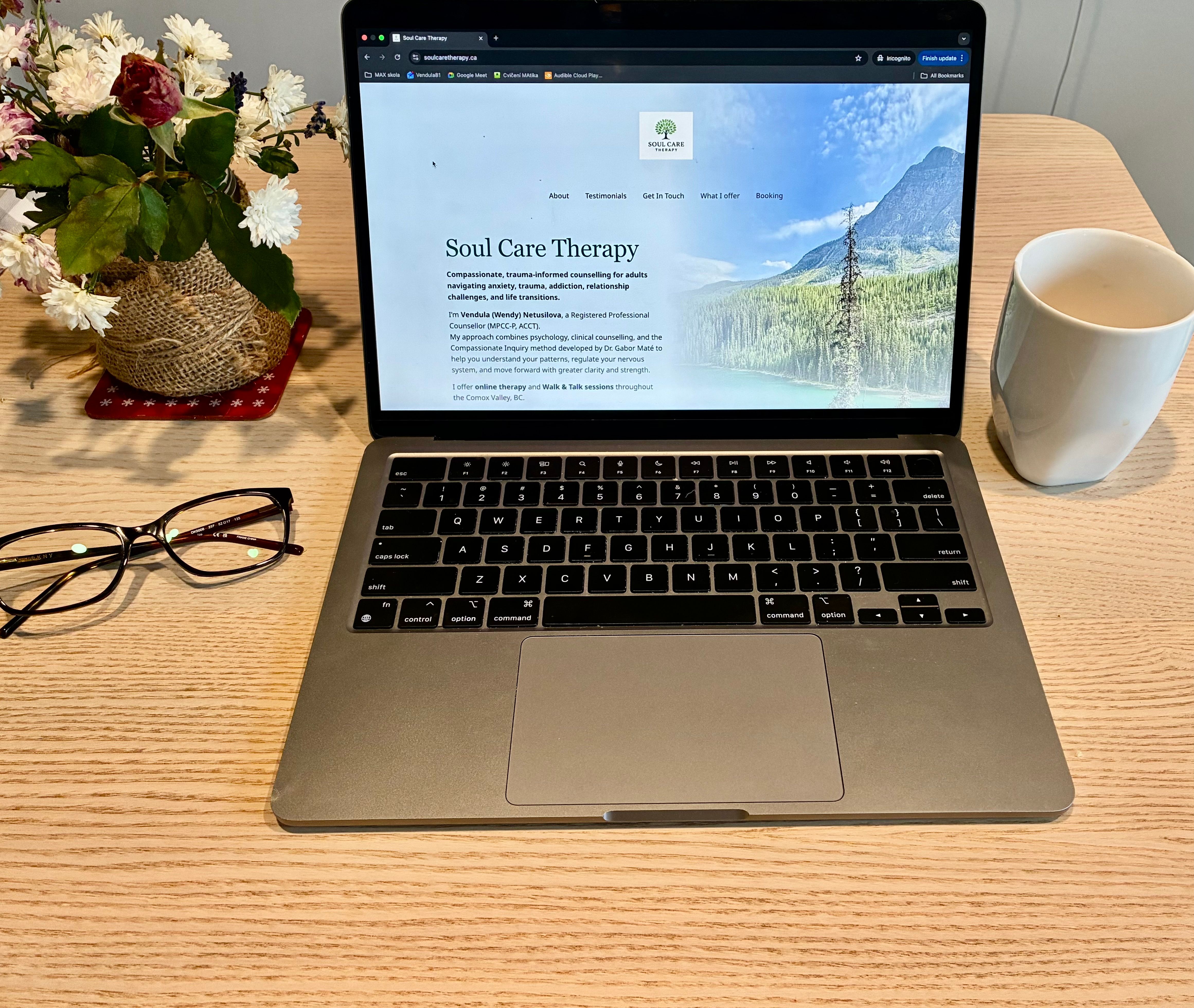My approach combines psychology, clinical counselling, and the Compassionate Inquiry method developed by Dr. Gabor Maté to help you understand your patterns, regulate your nervous system, and move forward with greater clarity and strength.